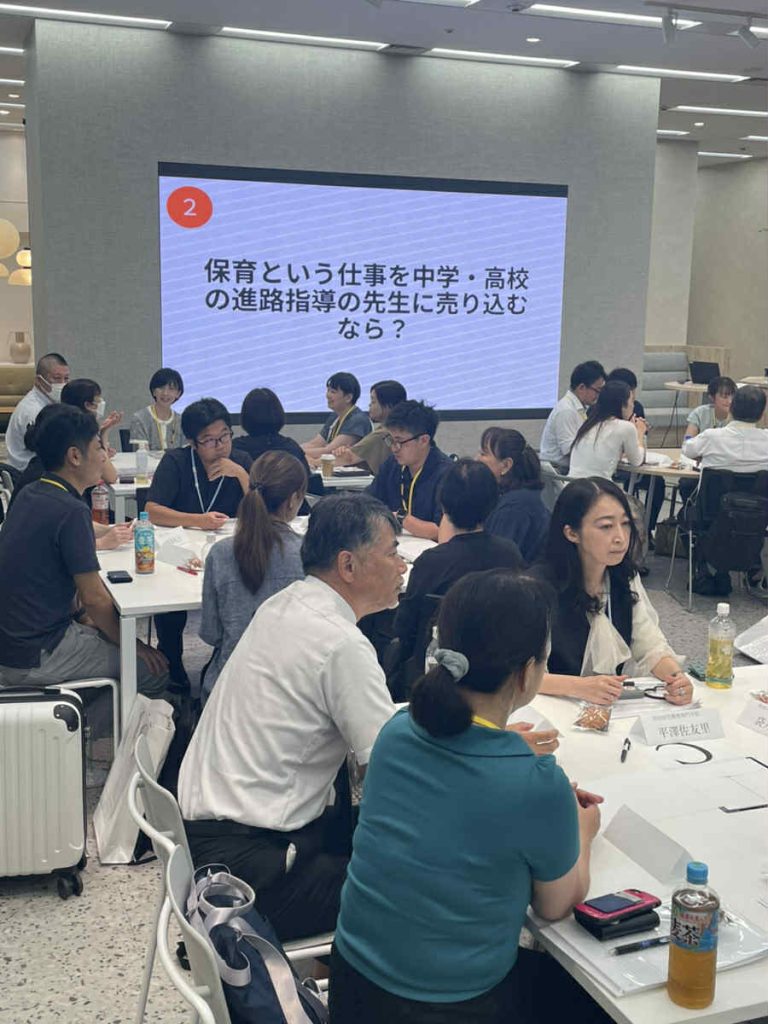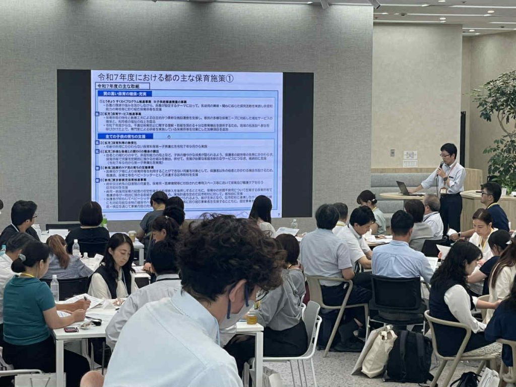 今回で3回目となる東京都認定こども園協会と全国小規模保育協議会東京チャプターの合同交流研修会では、行政も重要政策として取り組み始めた保育人材確保についての最新情報の提供と、現場の事業者・養成校に加え、初めて行政(こども家庭庁&東京都!)が、ともに持続可能な保育人材確保について解決案を考えるワークショップを実施いたしました。